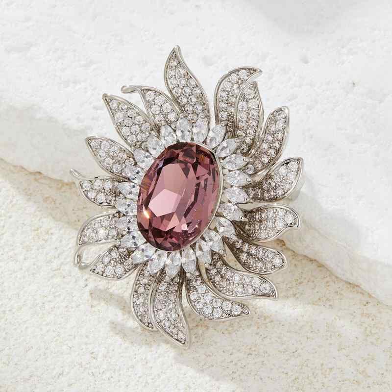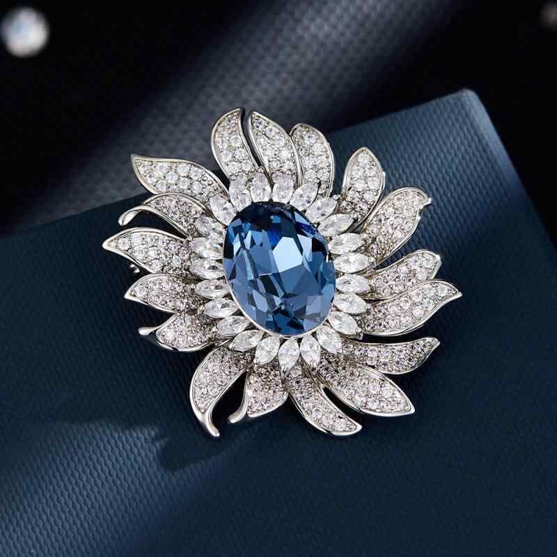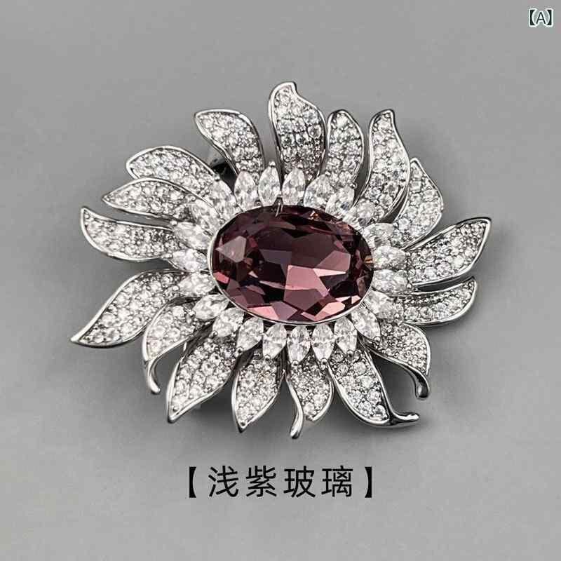 ブローチ レディース フレンチスタイル クリスタル ひまわり フラワーモチーフ 個性的 高級感 マイクロセッティング 銅製 秋冬 プレゼント 装飾 通勤スタイル