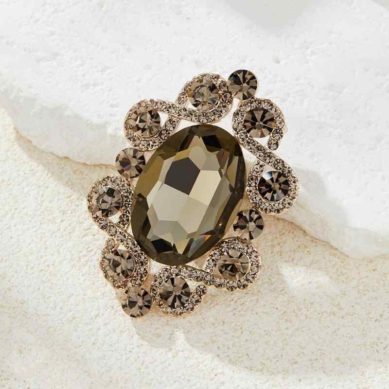 ブローチ レディース レトロ 宮廷風 楕円形 クリスタル 高級感 銅製 電気メッキ加工 幾何学模様 スーツ ジャケット アウター アクセサリー フォーマル オフィス ギフト