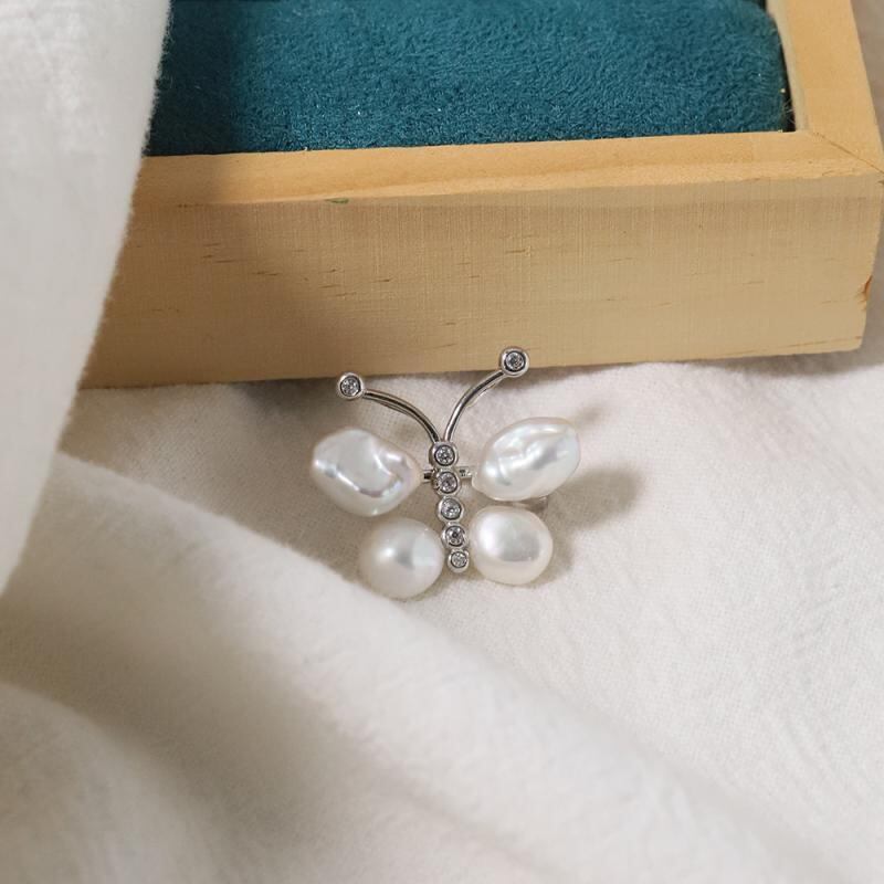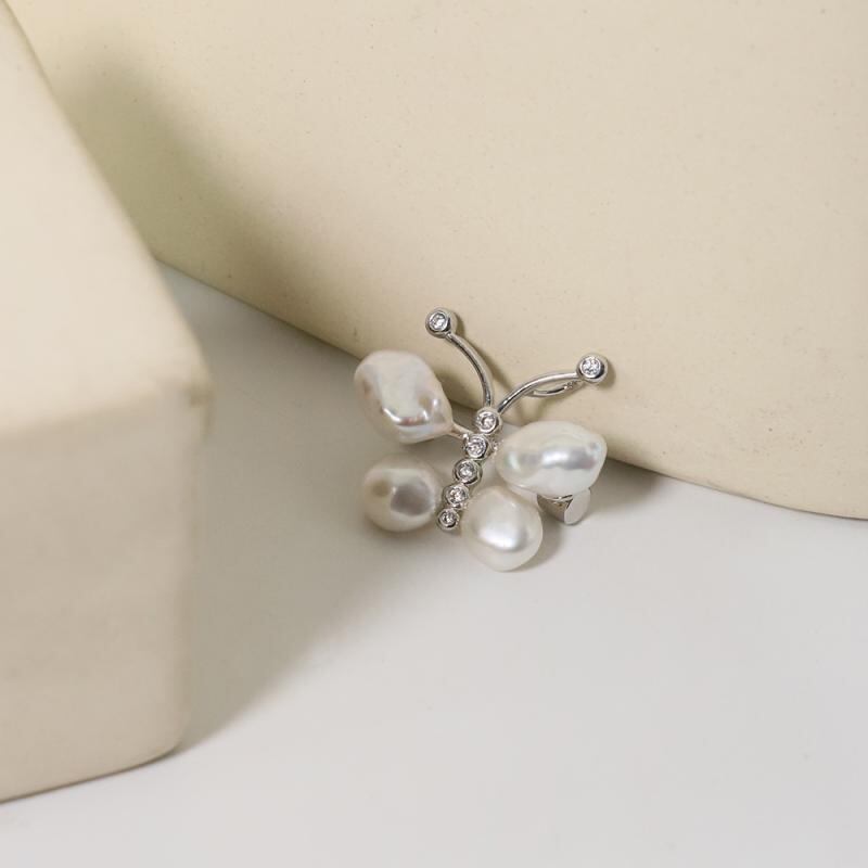 ブローチ パール レディース セレモニー コンサート 結婚式 贈り物 おしゃれ 胸飾り 高級感 シルバー925 バロック 蝶 バタフライ ペンダント 2WAY シンプル アクセサリー ジュエリー