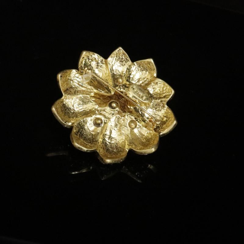 ブローチ レディース ひまわり 花モチーフ 多層デザイン ジルコニア ラインストーン 敷き詰め 電気メッキ加工 ゴールド エレガント 華やか 上品 高級感 普段使い セレモニー 結婚式 ファッション小物 秋冬