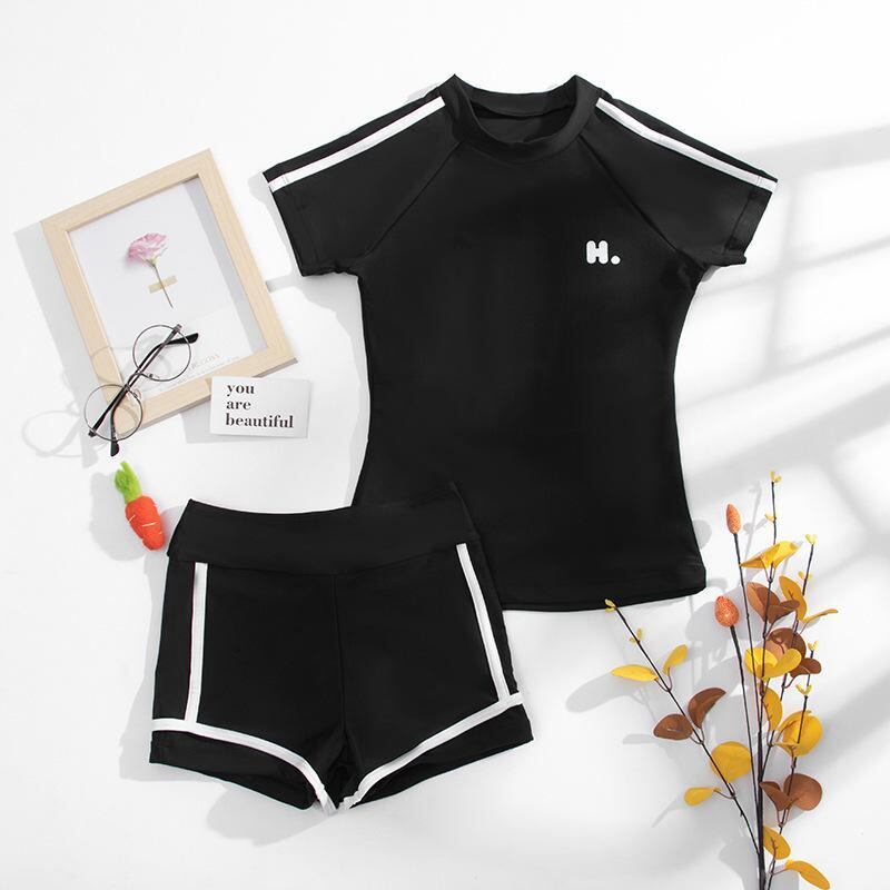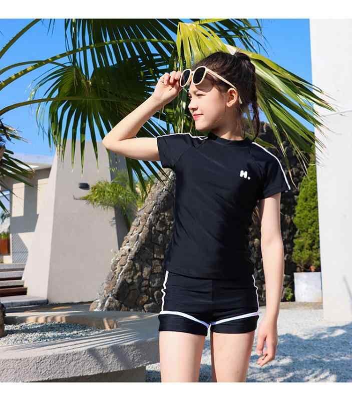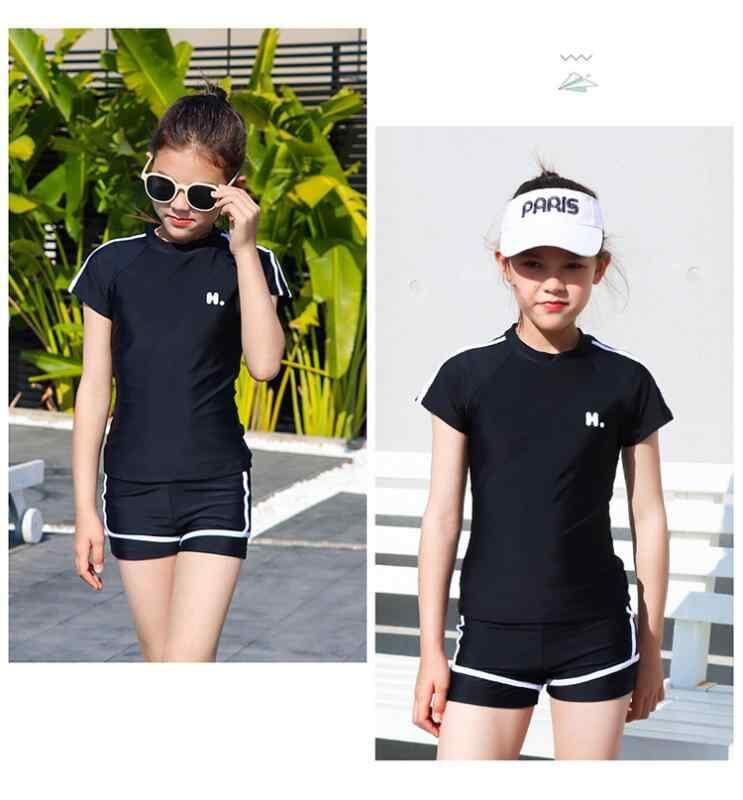 スイムウェア キッズ 女の子 ジュニア 競泳水着 セパレート 2点セット ブラック スポーツ ボックスタイプ 高弾性 ナイロン ポリエステル プール 海水浴 練習用