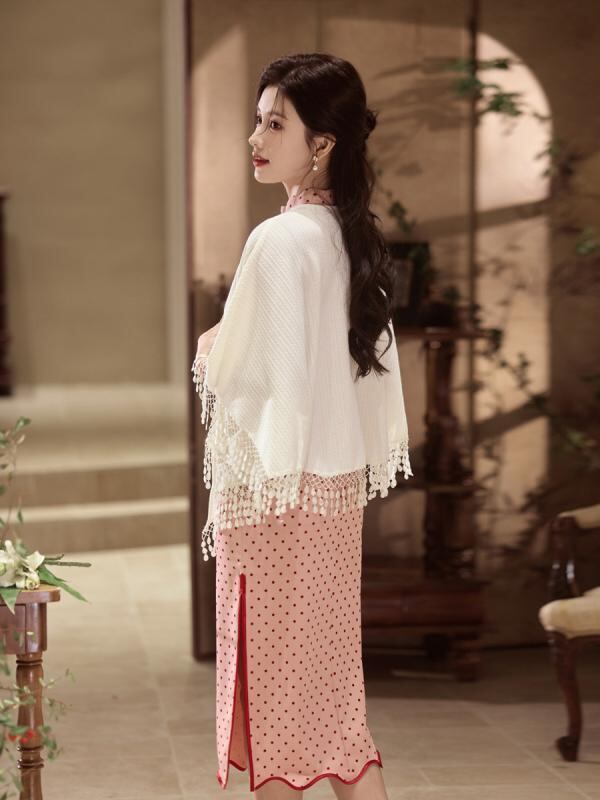 チャイナドレス ノースリーブ スタイリッシュ レディース 新チャイナ風 夏 痩せ見え スタイルアップ 淑女 ピンク 水玉 ドット 高級感 上品 日常使い 普段着