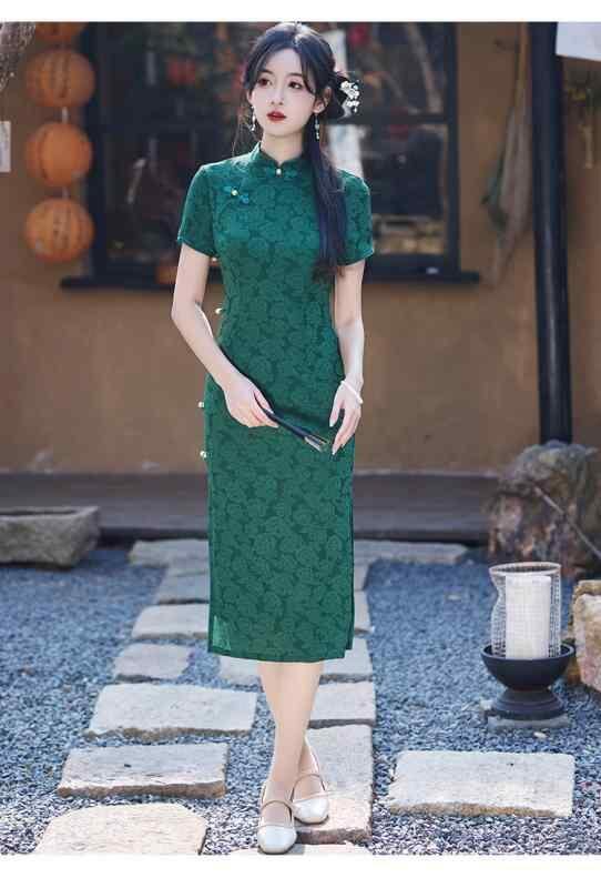 チャイナドレス レディース ワンピース 緑色 チャイナ服 女性用 新中式 夏用 夏物 若々しい方向け 普段使い 日常使い デイリー