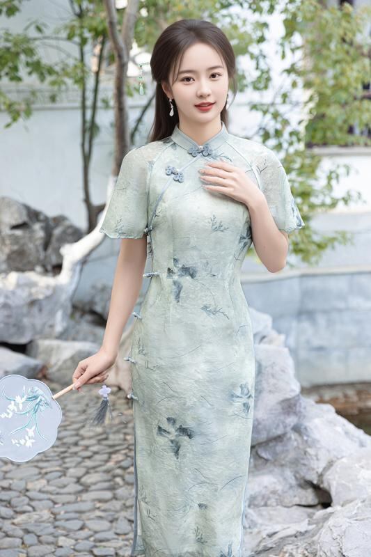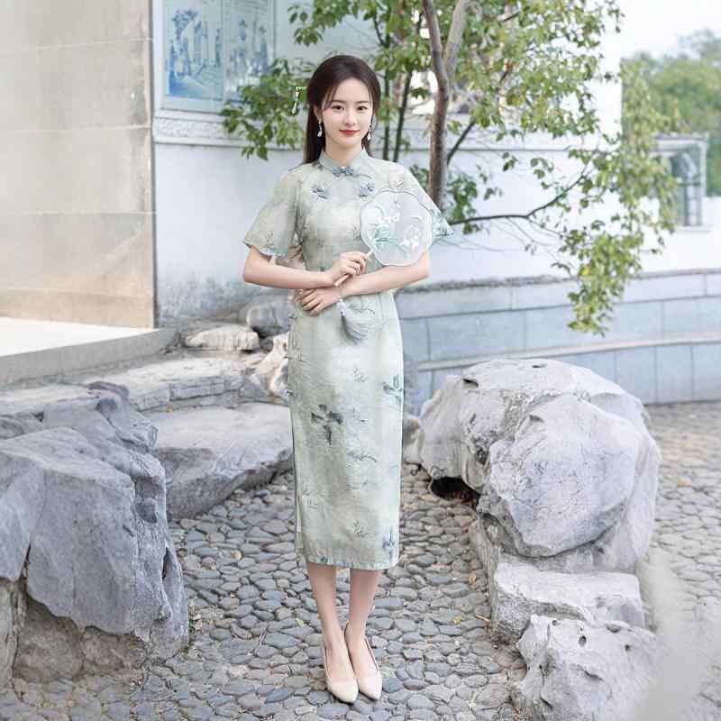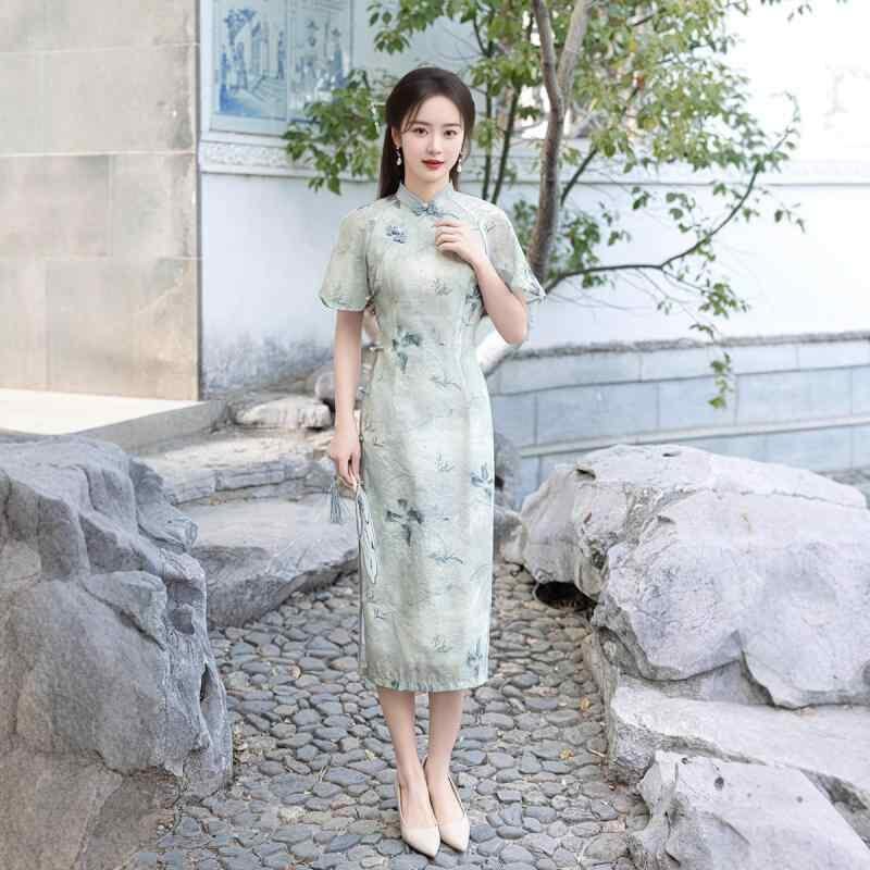 チャイナドレス レディース ワンピース 春夏 普段使い デイリー 新中式 モダンチャイナ 若見え 上品 気品 淑女 エレガント スタイルアップ 美シルエット