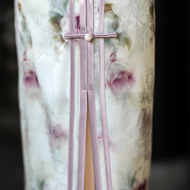 チャイナドレス レディース 春夏 改良 日常使い 高級感 上品 ロング丈 スリムフィット レトロモダン エレガント アセテートジャカード素材 スタンドカラー 斜め襟 半袖 スリット