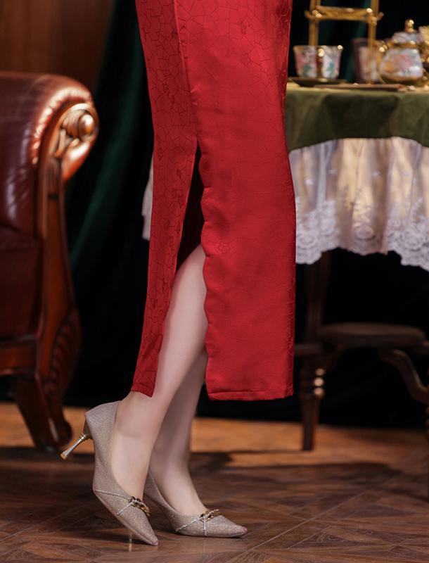 チャイナドレス レディース 春夏 改良 モダン ロング丈 ノースリーブ スタンドカラー 花嫁 披露宴 赤色 レトロ ヴィンテージ 結婚式 二次会 フォーマル 高級感 エレガント ポリエステル