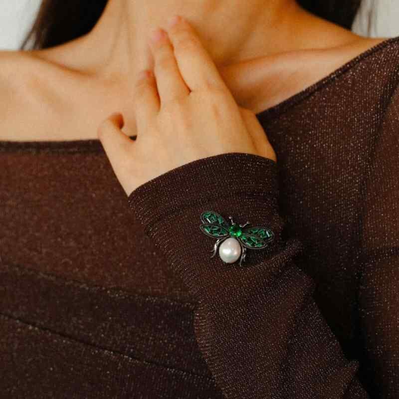 ・カテゴリ: ブローチ・主な素材: 銅、パール・対象: 女性・モチーフ: 蜂・加工: メッキ加工・カラー展開: シルバー、グリーンジルコニア、ホワイトジルコニア、ブラッシュ・機能: 装飾、ギフト・スタイル: 高級感、ファッション通勤