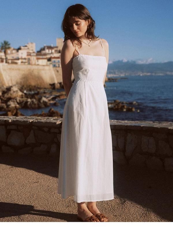 ワンピース レディース 白色 スクエアネック キャミワンピース バックオープン リボン 無地 フレンチ フェミニン 大人可愛い Aライン コットン ミディ丈 普段使い デート 春夏