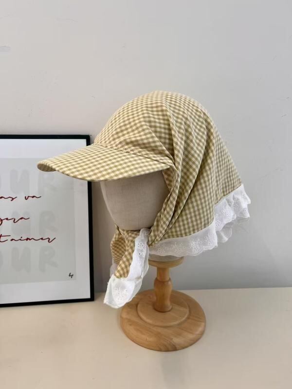 帽子 スカーフ キャップ レディース 日よけ 小顔見え おしゃれ かわいい 格子柄 バンダナ 春夏 休暇 レース 日焼け対策