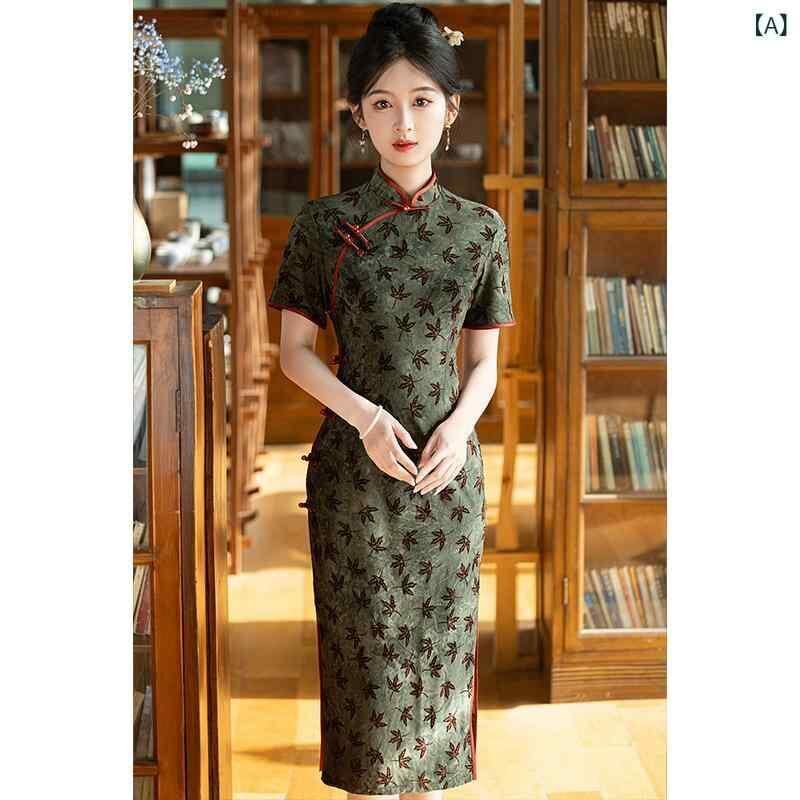 チャイナドレス レディース フェミニン スタイリッシュ ワンピース ロング丈 斜め襟 女性用 中華風 レトロ