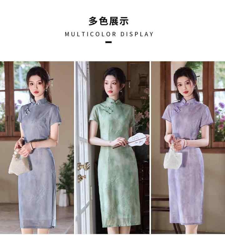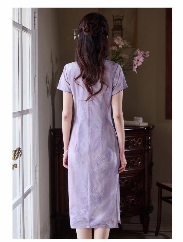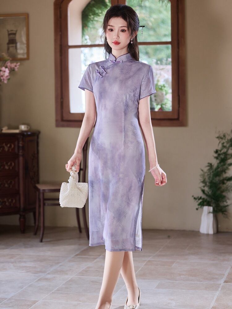 チャイナドレス レディース フェミニン スタイリッシュ 紫 ワンピース 春夏 若々しい女性 エレガント