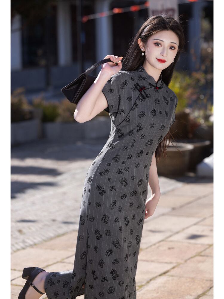 チャイナドレス レディース フェミニン スタイリッシュ 中国風 黒色 ワンピース 夏 若々しい レトロ 文芸 淑女