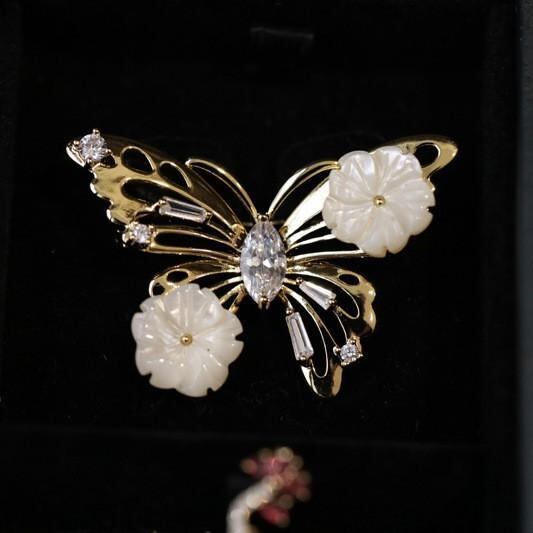 ブローチ レディース 貝殻 小花 蝶 ジルコニア ピン ファッション シンプル アクセサリー 服飾小物 オールシーズン デイリーユース 銅製 電気メッキ加工