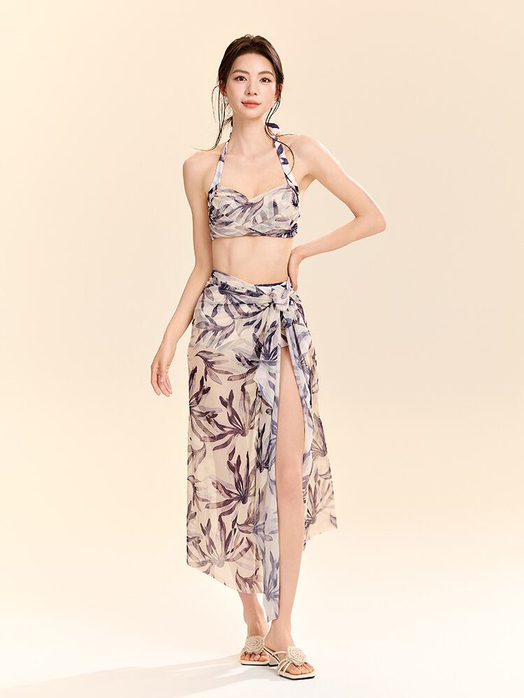 水着 レディース セパレート 三角ビキニ メッシュ ロングスカート 3点セット 大人用 セクシー 欧米風 体型カバー ワイヤー入り パッド付き グリーン パープル