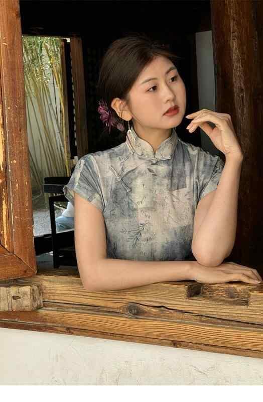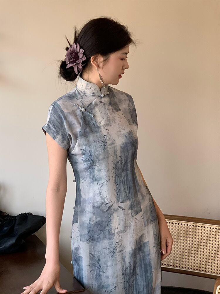 チャイナ ロングワンピース レディース 新中国風 普段使い テンセル麻素材 スタンドカラー 斜め襟 五分袖 ハイスリット エレガント レトロ クラシック 春夏