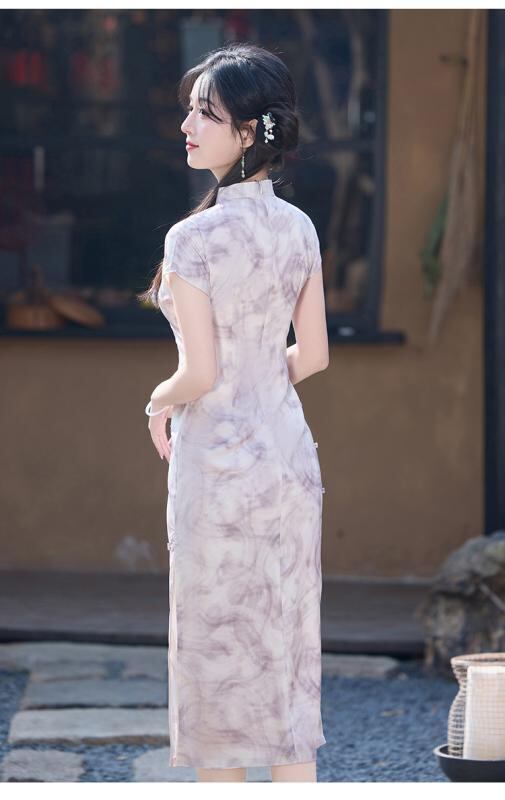 チャイナドレス レディース フェミニン スタイリッシュ 薄紫色 夏チャイナ風 レトロ 文芸風 ワンピース 細見え 着痩せ 普段使い デイリー 少女 ヤング