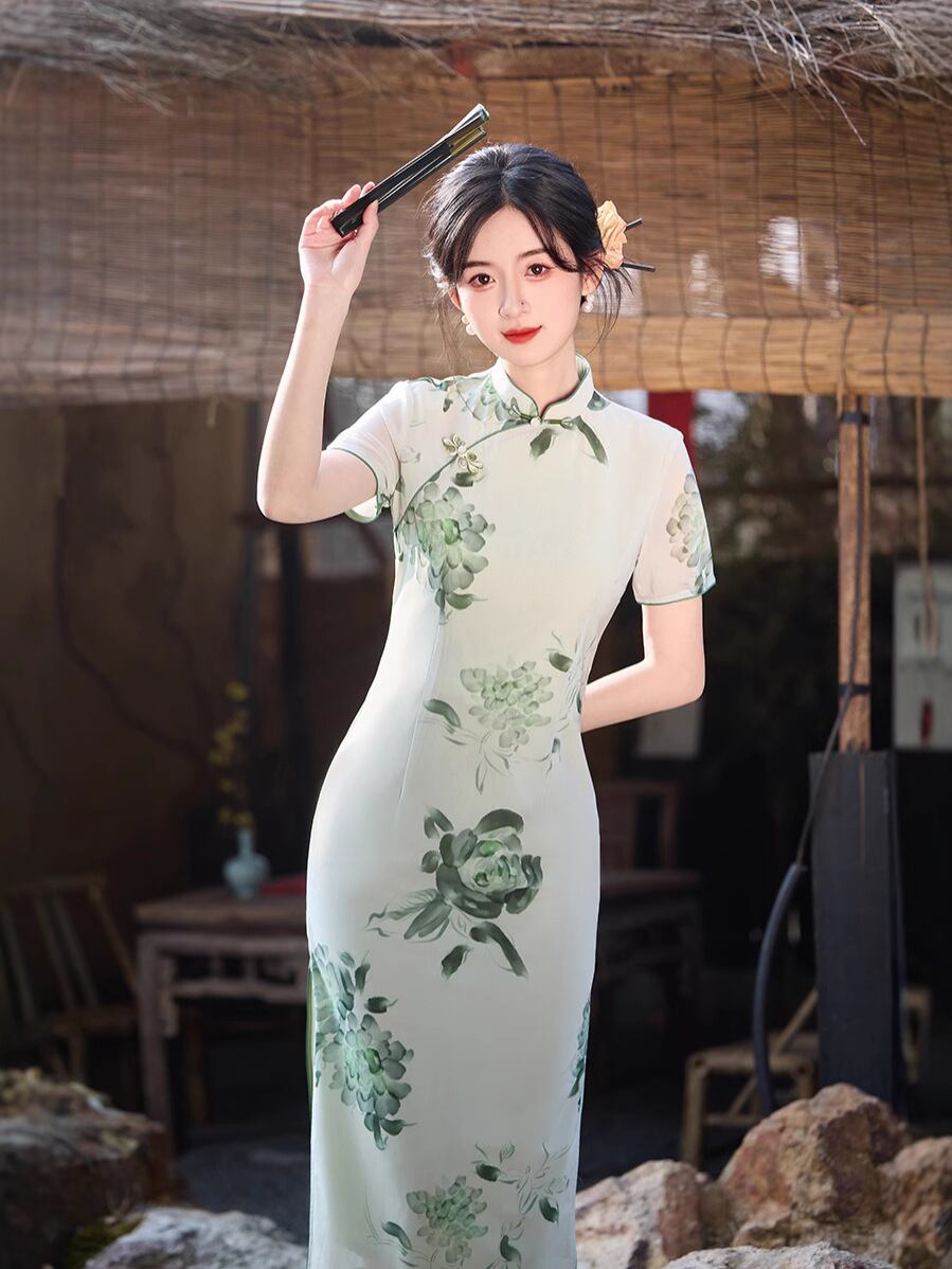 チャイナドレス レディース ワンピース 緑色 夏用 新中華風 若々しい女性 少女向け ガーリー