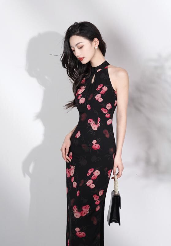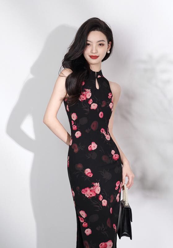 チャイナドレス レディース フェミニン スタイリッシュ 春夏 レトロモダン 風 ダブルクレープ デイリー ワンピース 涼やか 上品 二重仕立て