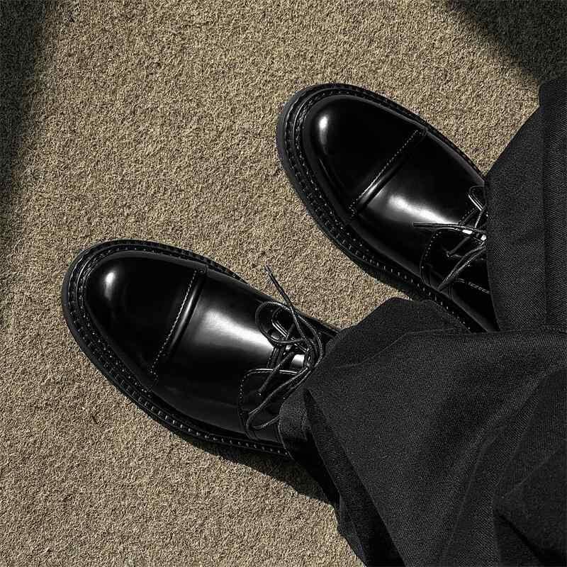 紳士靴 革靴 メンズ ビジネスシューズ オフィス 通勤 フォーマル カジュアルスタイル ブリティッシュスタイル UKデザイン 韓国系 トレンド レースアップ 紐靴 ブローグ メダリオン 合成皮革アッパー 滑り止め ゴム底 ブラック 黒