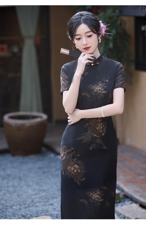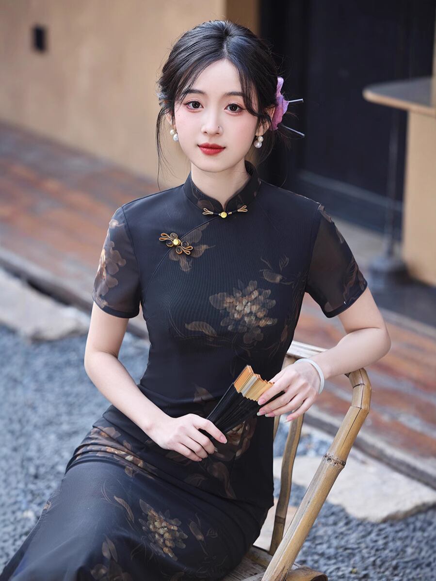 チャイナドレス レディース ワンピース 中国風 黒 夏用 新チャイナ風 若見え エレガント レトロ 高級感