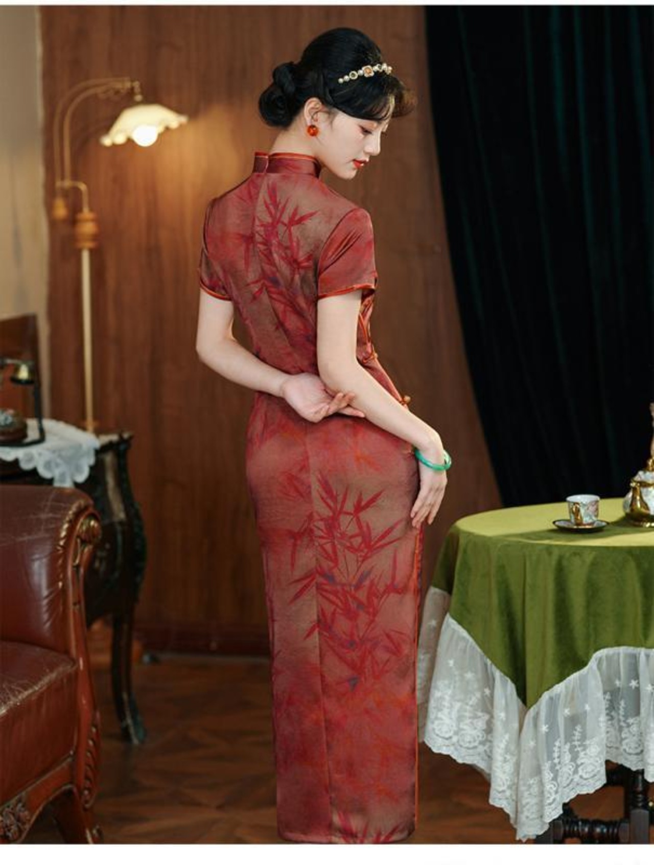 チャイナドレス レディース ロング丈 半袖 レトロ モダン 中華風 港風 春夏 フォーマル エレガント 上品 結婚式 披露宴 ママ パーティー ポリエステル スタンドカラー 斜め襟 ハイサイドスリット