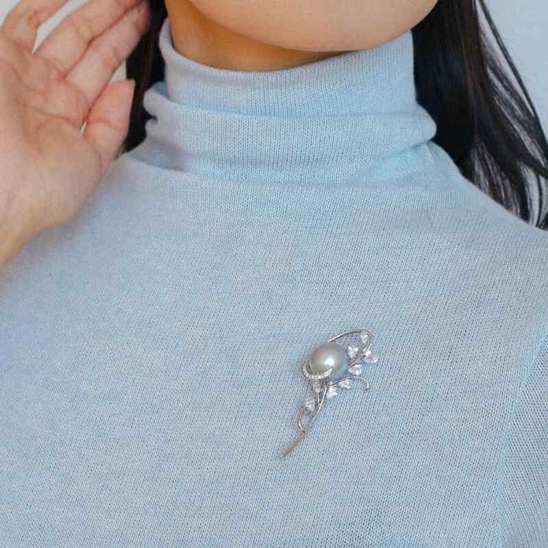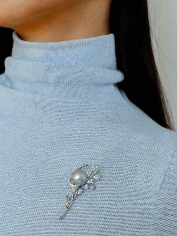 ブローチ パール レディース セレモニー コンサート 結婚式 贈り物 おしゃれ 胸飾り 高級感 手持ち花 グレー マベ コート セーター アクセサリー ファッション