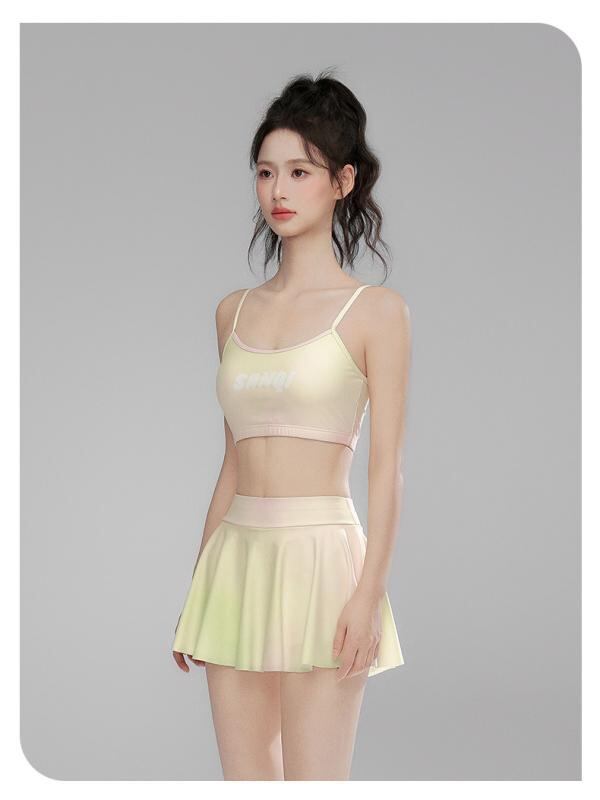 水着 レディース スポーツ セパレート 3点セット スカート付き 体型カバー 細見え 肌見せ控えめ UVカット ポリエステル カップ付き ノンワイヤー 高伸縮性 温泉 プール リゾート