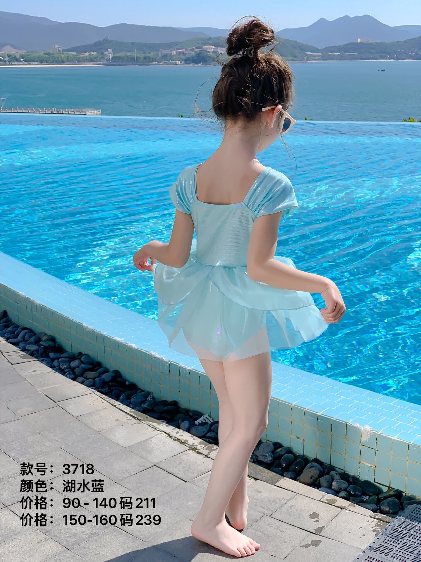 水着 キッズ 女の子 セーラーデザイン ワンピース スカート プリンセス風 速乾 ナイロン製 ターコイズブルー プール 海 スイミング レジャー 伸縮性 軽量
