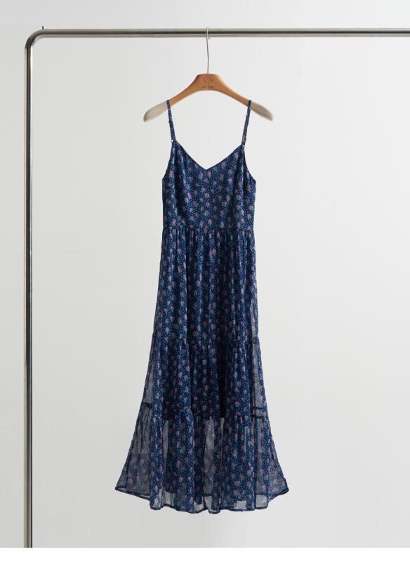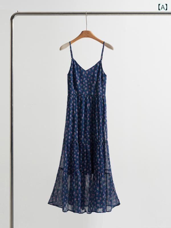 ワンピース レディース 春夏 韓国風 ファッション 優しい カジュアル リゾート スリム Aライン ロング丈 キャミソール シルク ポリエステル Vネック ノースリーブ エレガント 通勤 ダークブルー