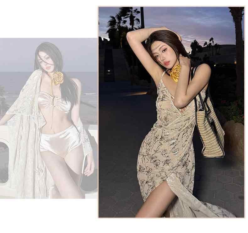 水着 レディース ビキニ カバーアップ ビーチウェア セット 大人 エレガント セクシー おしゃれ 速乾 ストレッチ カップ付き ノンワイヤー 温泉 リゾート 旅行 ピンク