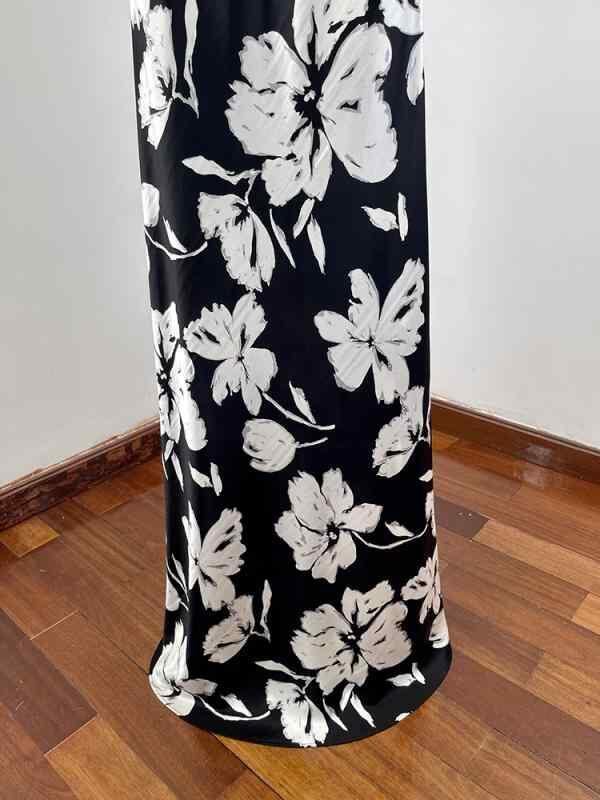ワンピース レディース フレンチシック 白黒プリント アセテート Vネック ノースリーブ 立体カッティング 細見え Aライン マーメイドシルエット ロング丈 春夏 通勤 オフィスカジュアル エレガント
