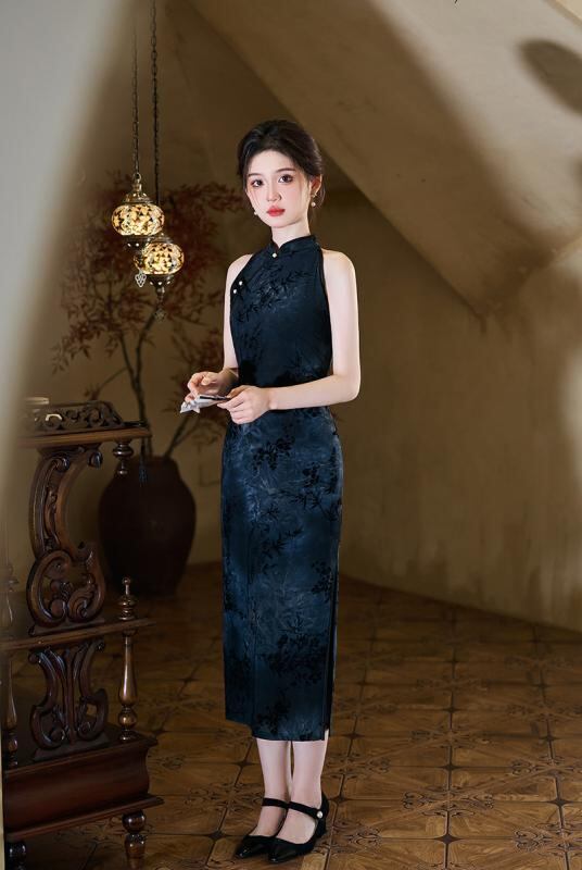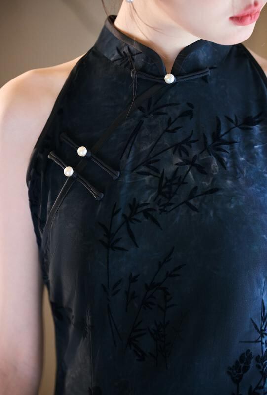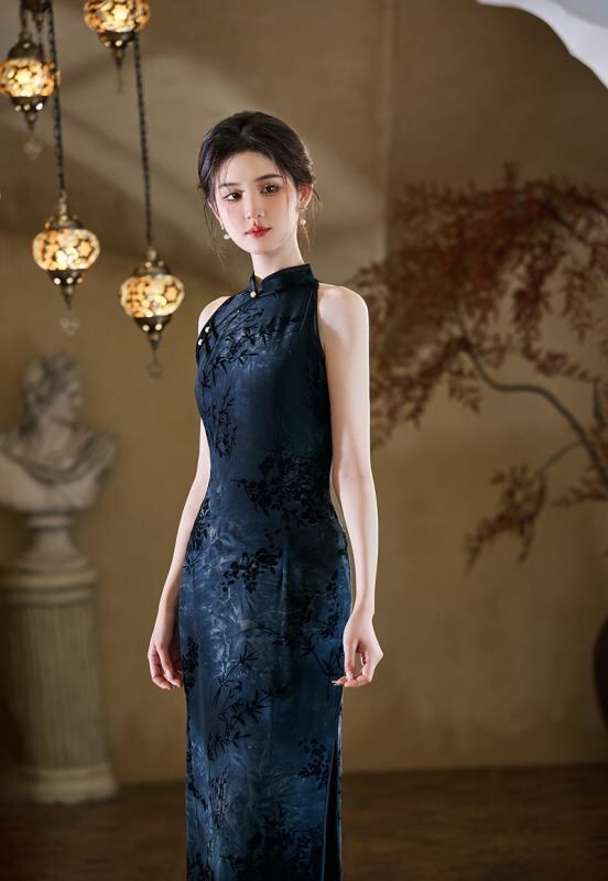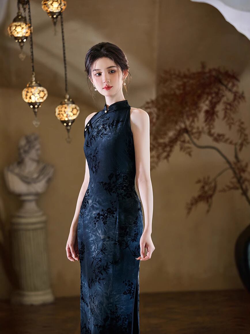チャイナドレス ノースリーブ スタイリッシュ レディース 絶美 華やか 新中式 チャイナ風 ホルターネック 袖なし ワンピース ドレス モダン 向け 少女 ガーリー
