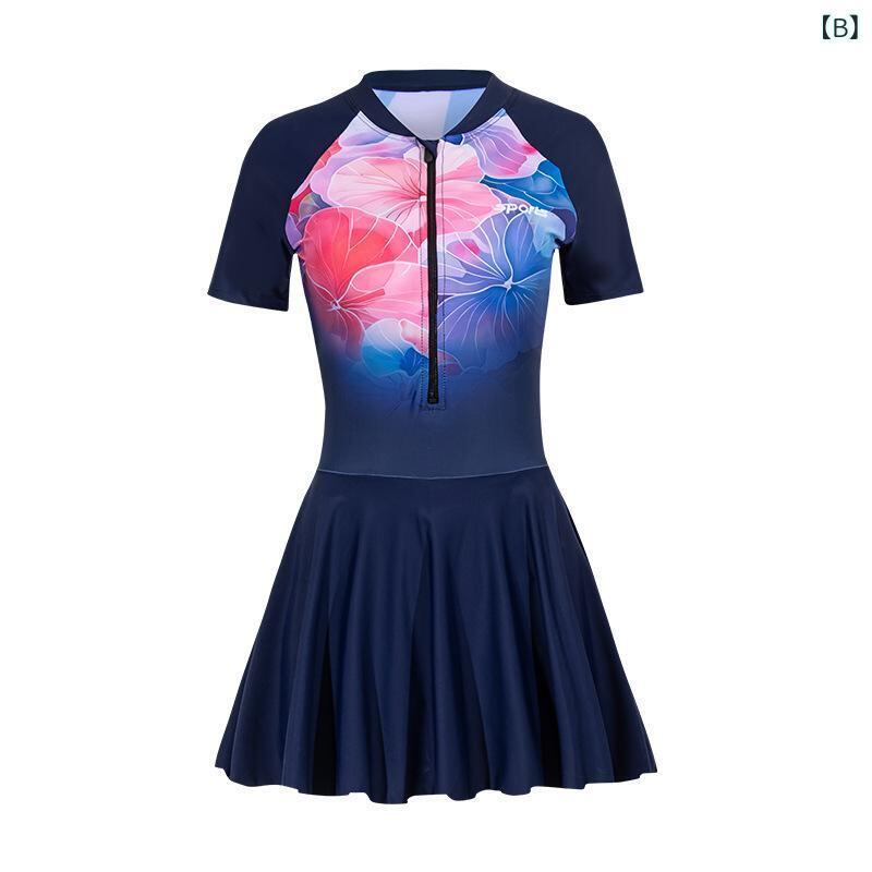 水着 レディース ファッション スポーティー 体型カバー 半袖 ワンピース スカート 競泳水着 練習用 スイムウェア フィットネス 伸縮性 ポリエステル 体系カバー 花柄