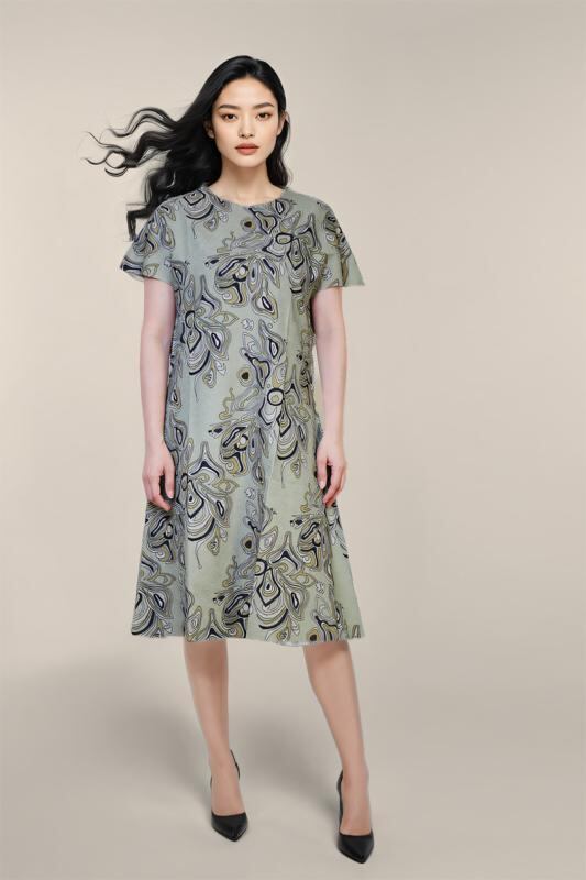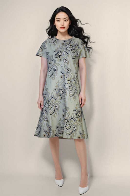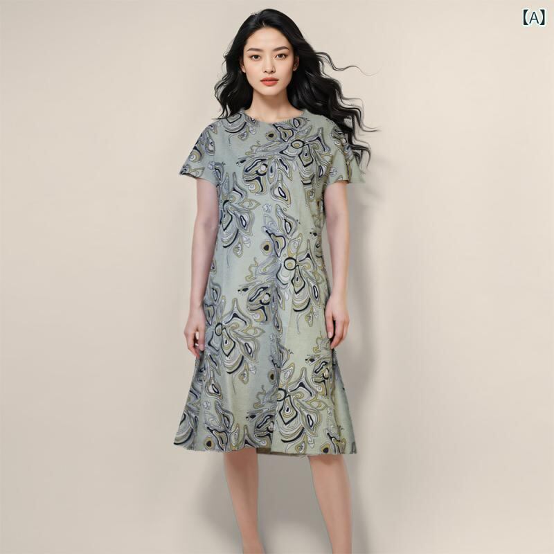ワンピース レディース 高級感 プリーツ加工 花柄 レトロ ゆったり 大きいサイズ ラウンドネック 半袖 Aライン ミディ丈 ポリエステル エレガント デイリーユース 春夏