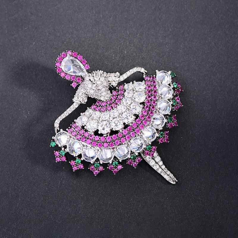 ブローチ レディース バレリーナ ガール モチーフ 個性的 エレガント 上品 高級感 ジルコニア 輝き 銅製 カラフル 胸元飾り アクセサリー 春夏 フォーマル