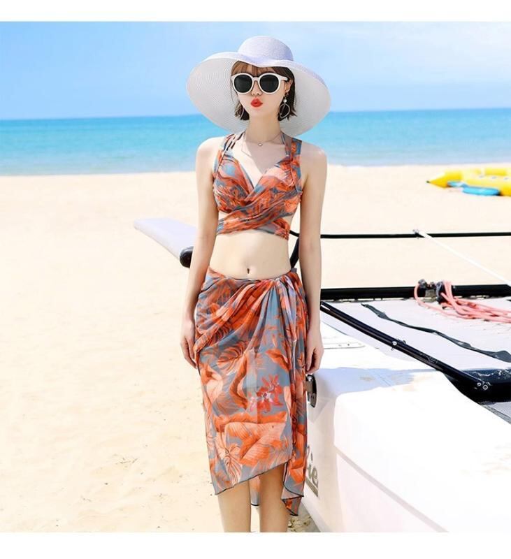 水着 レディース ビキニ スリーピース セットアップ セクシー スタイルアップ 体型カバー 着痩せ効果 カップ付き ノンワイヤー おしゃれ ビーチ リゾート 海 プール 温泉 春夏 ニュアンスブルー
