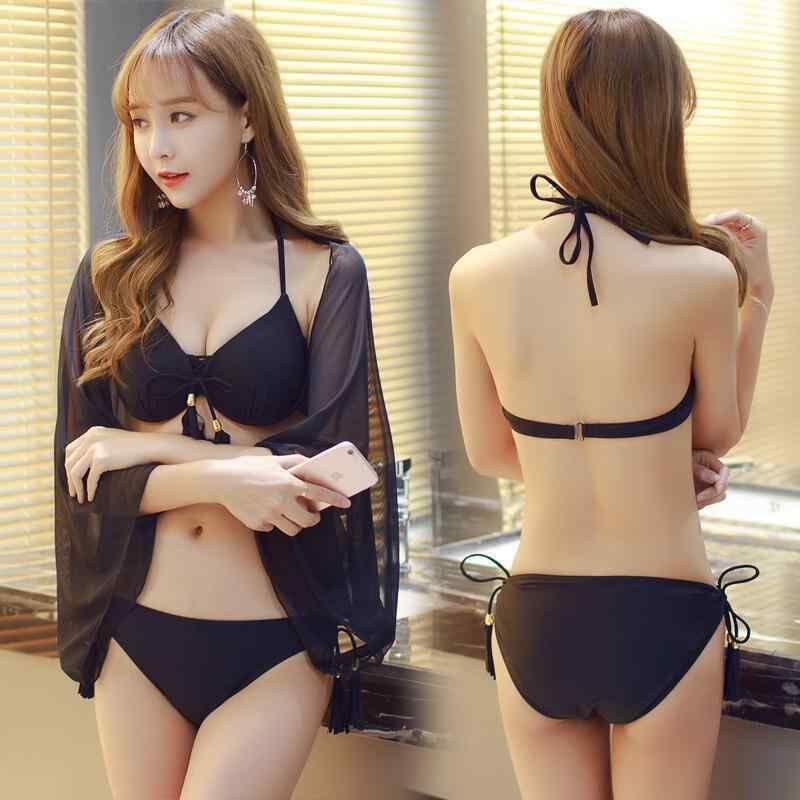 水着 レディース ビキニ スイムウェア ブラック 無地 シンプル セクシー 小胸向け 谷間メイク 体型カバー お腹カバー カバーアップ チュニック リゾート プール ビーチ