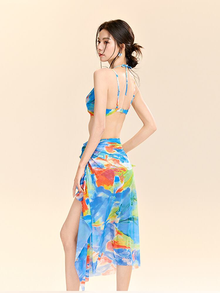 水着 レディース 小胸向け プッシュアップ ビキニ 3点セット セパレート セクシー ハイウエスト オープンバック パッド入り ノンワイヤー 体型カバー ナイロン スパンデックス 温泉 リゾート バカンス プール 海水浴 スイムウェア