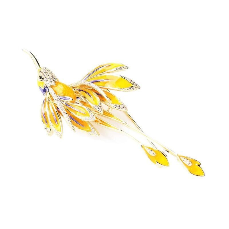 ブローチ 男女兼用 中国風 鳳凰 龍鳳紋様 七宝焼 エナメル加工 銅製 電気メッキ加工 高級感 カラフル 黄色 レトロ アンティーク デイリー カジュアル プレゼント