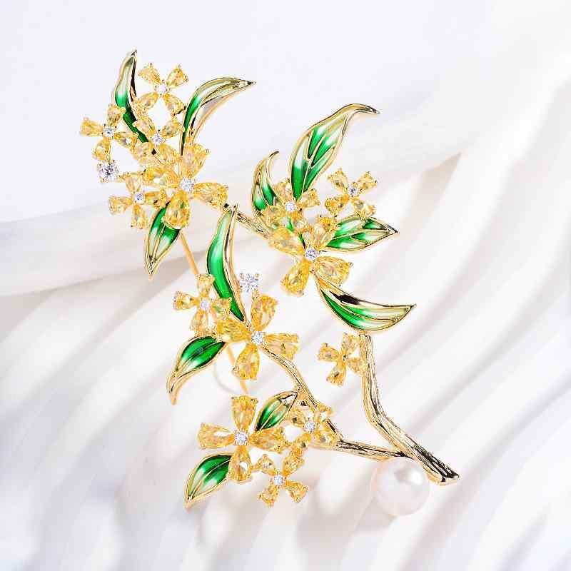 ブローチ レディース エナメル キンモクセイ 淡水パール フラワーモチーフ 高級感 デザイン ジルコニア エレガント 上品 ファッション アクセサリー プレゼント