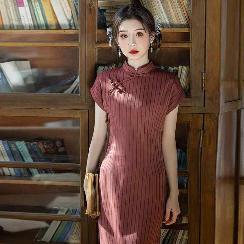 チャイナドレス レディース フェミニン スタイリッシュ 紺 夏 ショート丈 ワンピース 普段使い カジュアル 着痩せ 体型カバー 中華風 レトロ