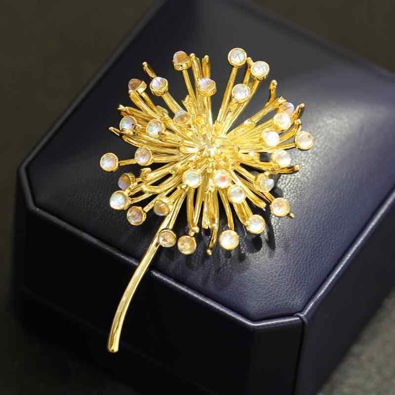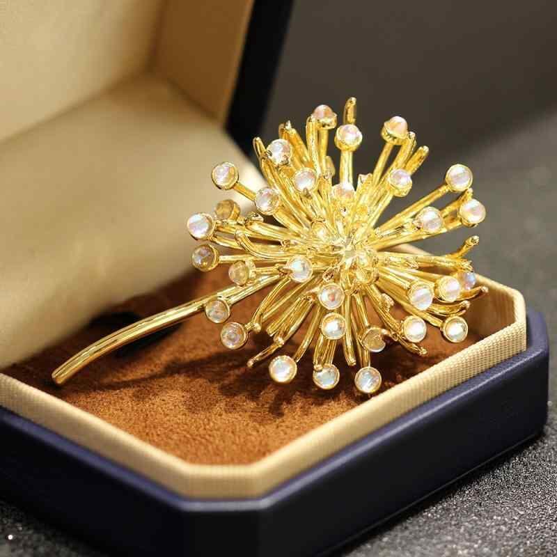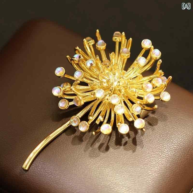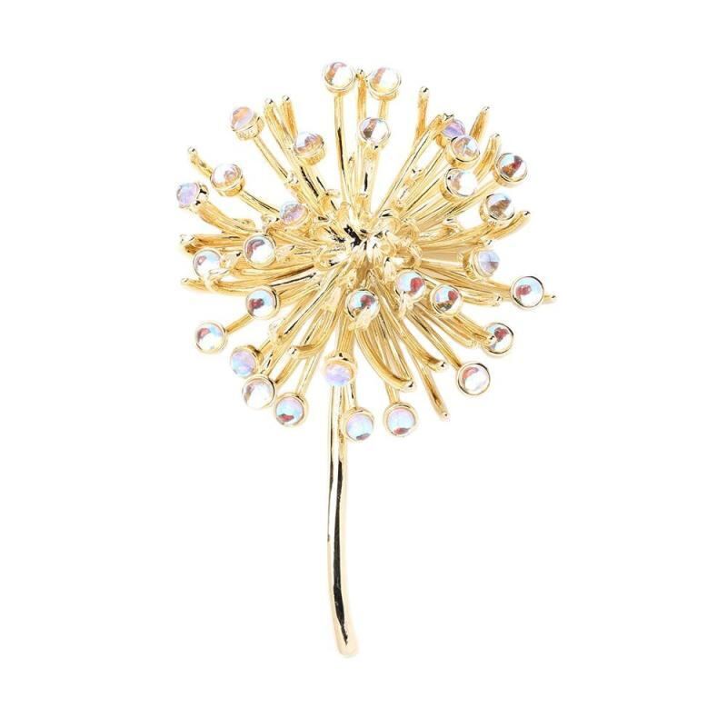 ブローチ レディース タンポポ 大ぶり 立体感 ゴールド 高級感 個性的 フラワーブーケ エレガント 上品 華やか 普段使い ファッション小物 通勤 オフィス パーティー フォーマル セレモニー 銅製 電気メッキ加工