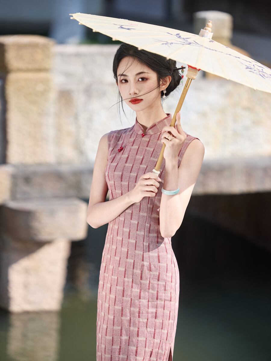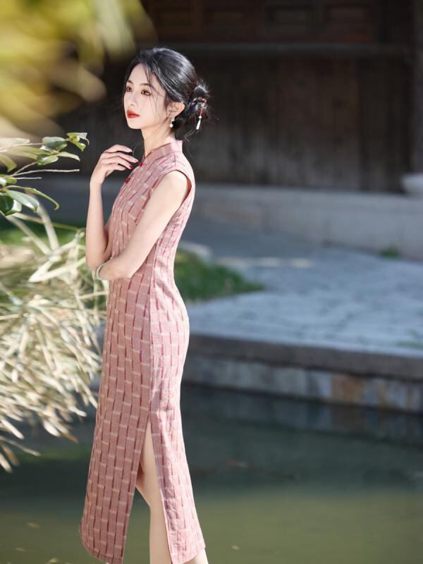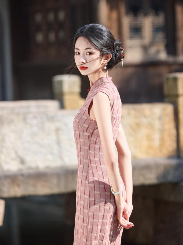 チャイナドレス ノースリーブ スタイリッシュ レディース 中国風 夏 ストライプ レトロ ワンピース 普段使い カジュアル