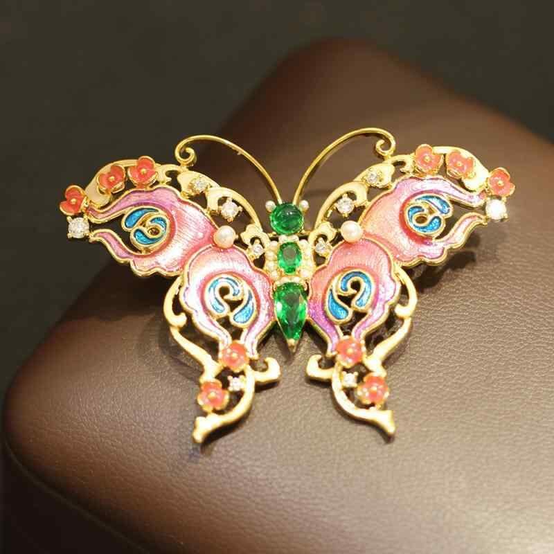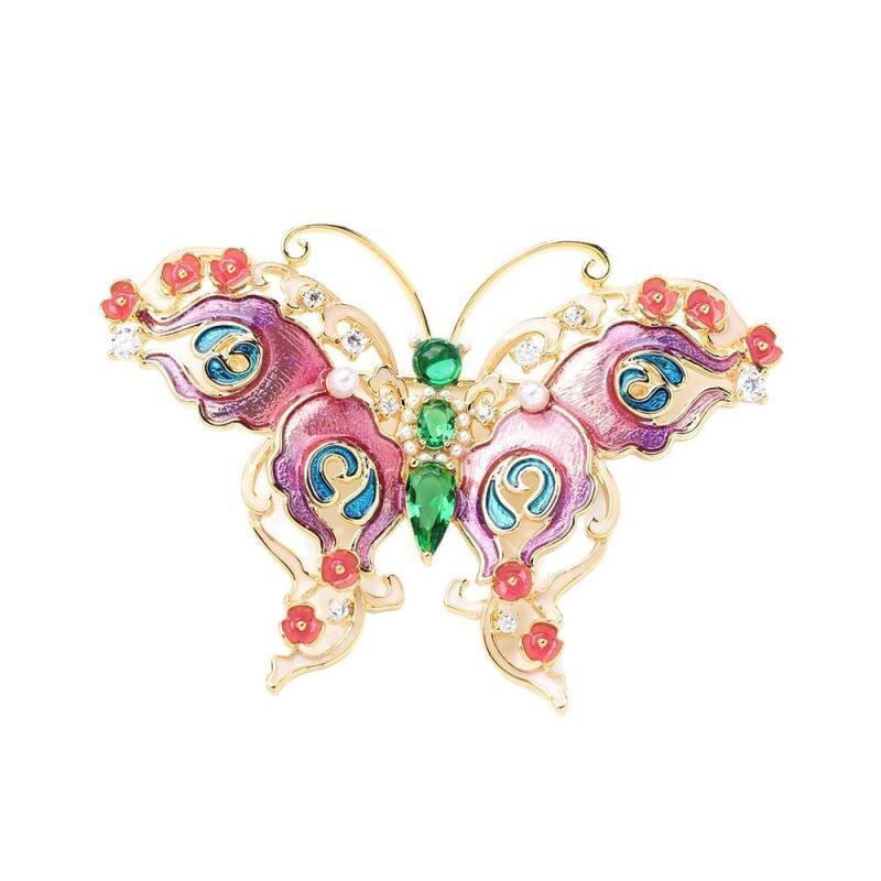 ブローチ レディース 蝶 エナメル加工 アンティーク風 上品 エレガント 銅製 ゴールドカラー 漢服 チャイナドレス フォーマル パーティー 贈り物 ファッション小物