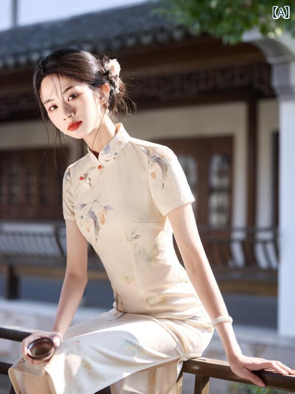 チャイナドレス レディース ワンピース 春夏 レトロ 新中華風 旧風 上品 気品 一枚仕立て 細見え 普段使い