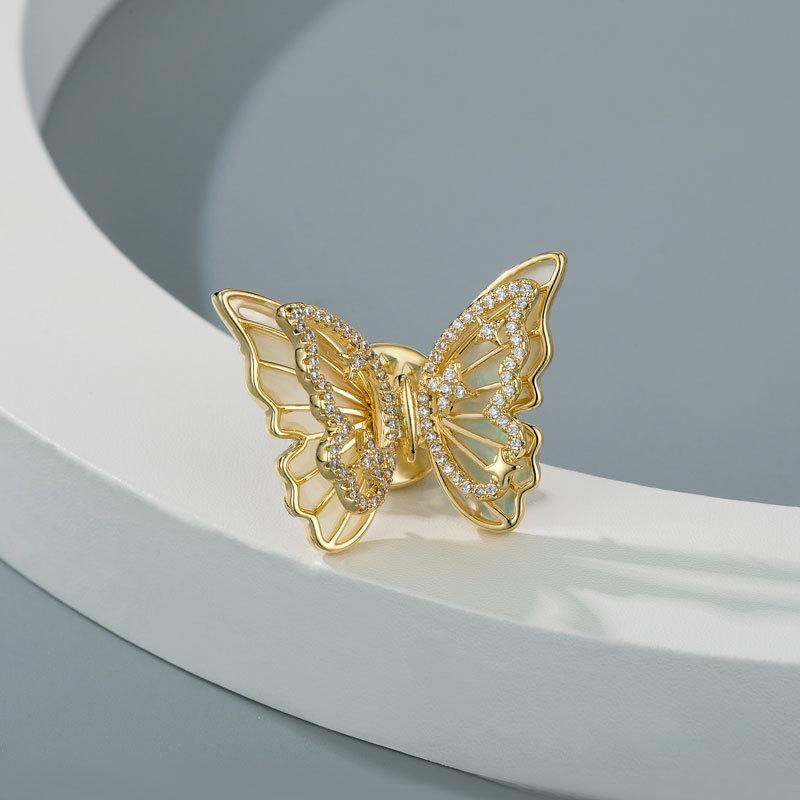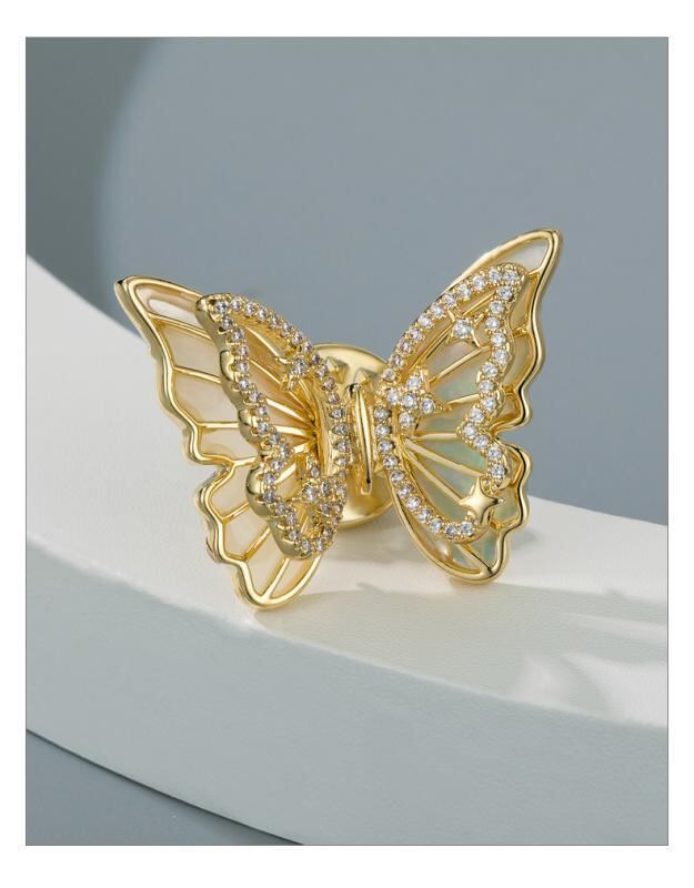 ブローチ レディース 女性用 春夏 立体的 透かし彫り 貝殻 蝶 昆虫モチーフ ライトラグジュアリー 高級感 ファッション 通勤 おしゃれ クラシック 定番 銅製 電気メッキ加工