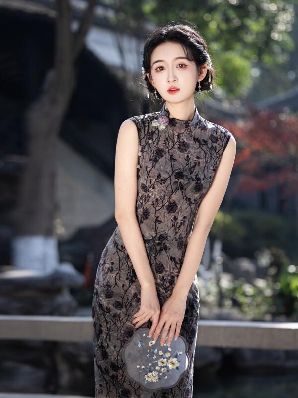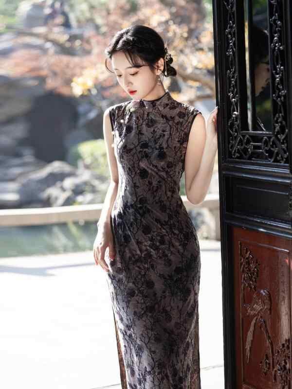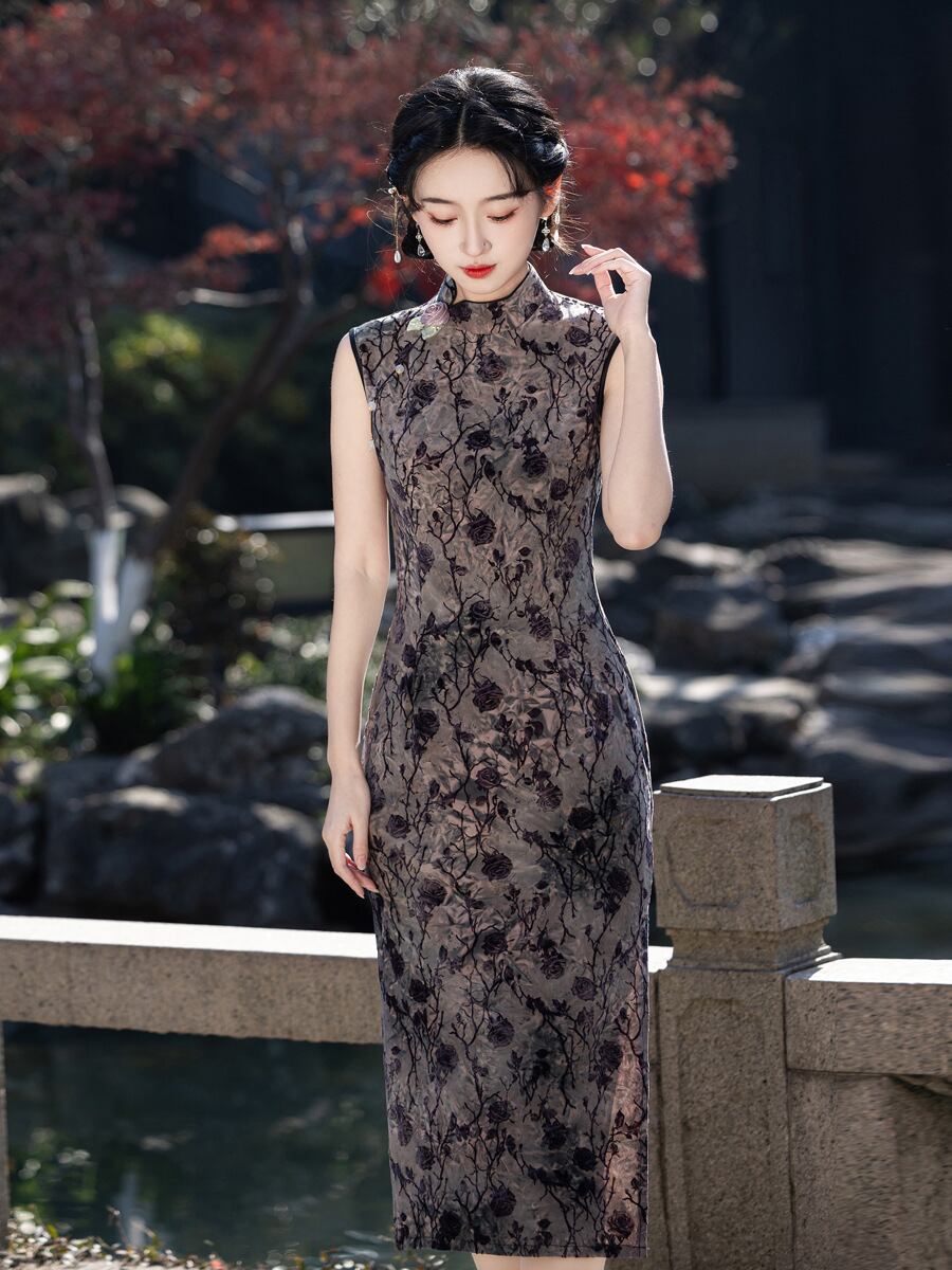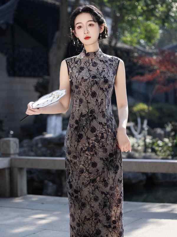チャイナドレス ノースリーブ スタイリッシュ レディース 着痩せ スリム 袖なし 中華風 新中華スタイル ネオチャイナ ロング丈 長め 若見え女性向け 少女 レトロ クラシック 夏用