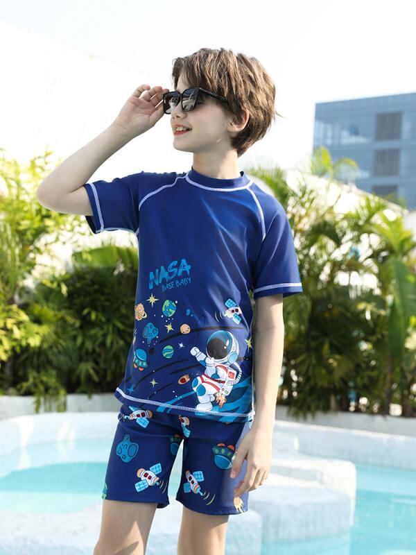 水着 男の子 ジュニア スイムウェア 半袖 セパレート 上下セット 速乾 スクール水着 プール 海 スイミング スポーツ 小学生 中学生 ナイロン ポリエステル 紺色
