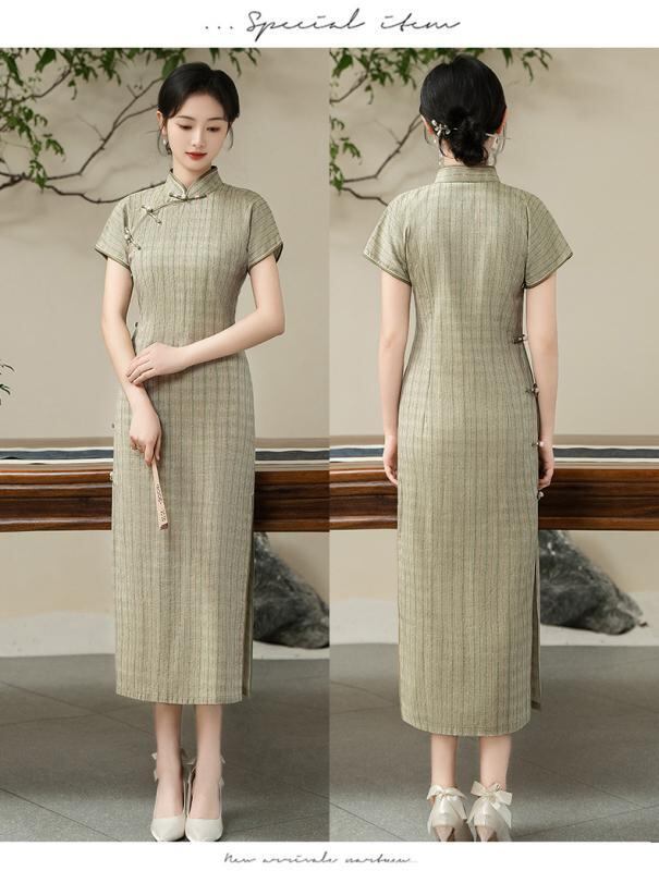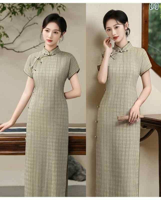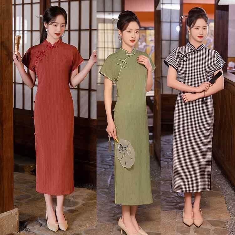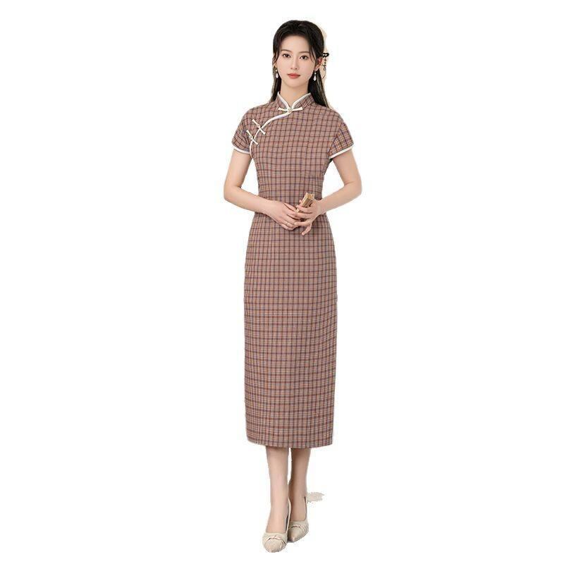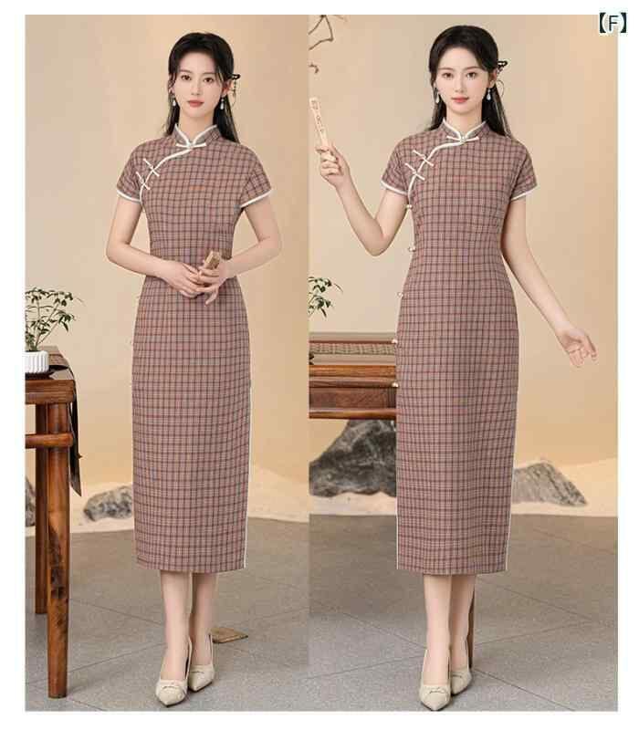 チャイナドレス レディース フェミニン スタイリッシュ 中国風 夏物 チェック柄 上品 レトロ 文芸 向け 少女 ワンピース ドレス
