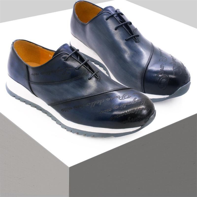 紳士靴 革靴 メンズ 本革 牛革 厚底 レーザー加工 レースアップ ヨーロピアンカジュアル シークレットシューズ 通気性 滑り止め ラバーソール ブルー ビジネス カジュアル